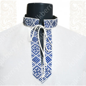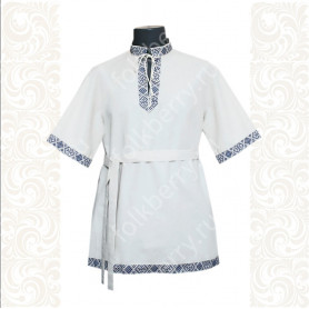 Блуза может быть выполнена из белого атласа (более праздничный вариант) или из хлопка. Пышный рукав по запястью присборен резинкой и имеет декоративный манжет из жаккардовой тесьмы.