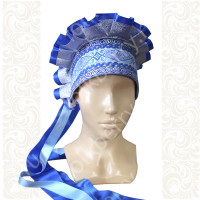 Сзади кокошник завязывается широкими лентами-крыльями из парчи. Высота кокошника - 14 см.