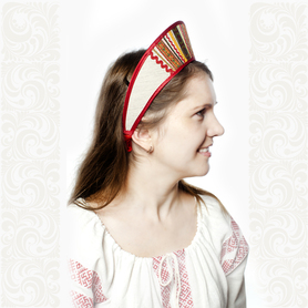 Кокошник Ксения - лаконичный по форме, красивый по сочетанию цветов, изысканный по материалам, благородный по образу.