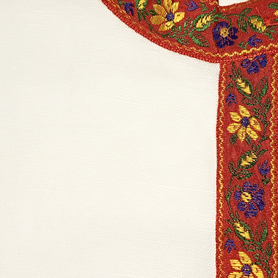 Материалы: лен, жаккардовая тесьма с обережными символами
