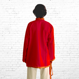 Косоворотка Оберег - ценный символический подарок мальчику или мужчине. Косоворотка "Оберег" сшита в традициях русской культуры и украшена декором из славянских знаков благополучия, процветания, здоровья, силы и удачи. Красный цвет декора также имеет символическое значение. В комплект входит пояс-кушак.