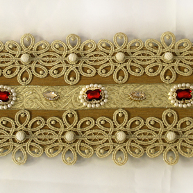 Материалы: тесьма с люрексом, парча, атлас или крепдешин, габардин, кружево.
