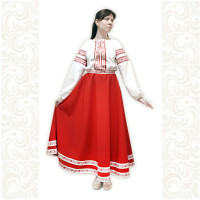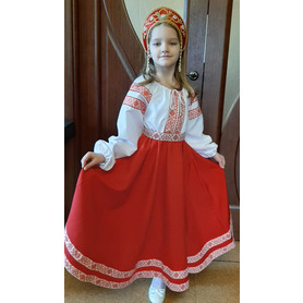 Платье Аврора удлиненное ( миди, до щиколотки) станет отличным вариантом сценического костюма! Сочетание белого и красного цвет, длинная юбка  придают платью торжественности. Свободный силуэт, рукав реглан, регулируемая горловина добавляют вещи комфортности.