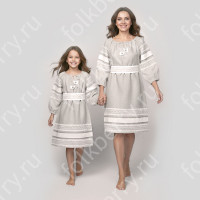 Декор платья - жаккардовая тесьма со славянскими символами. Талия немного завышена, пояс в комплекте.