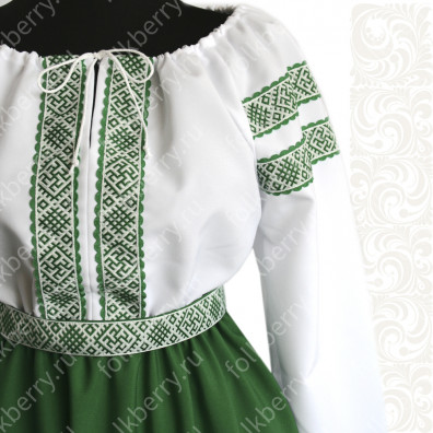 Платье «Дмитра» - современное прочтение славянских традиций. Платье четкого силуэта, чуть ниже колена, чистого яркого цвета. Платье отрезное по талии, длинный рукав-реглан, регулируемая горловина, юбка "почти солнце", с поясом. Для платья подобран эффектный декор -  солярные славянские знаки.  Платье сшито из габардина, ткани, которая не блестит и не мнется, всегда выглядит аккуратно, ярко, празднично, романтично.