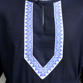 Фасон рубахи удобен и  не ограничивает движения. Жесткий воротник, пуговицы отсутствуют, рукав втачной, немного спущенный, свободный, длина рукава примерно до локтя. По бокам внизу разрезы. К рубахе прилагается пояс. Декор на груди выполнен из жаккардовой тесьмы в натуральном цвете. Для подбора правильного размера, в заказе, пожалуйста, пишите рост, обхват груди и талии.