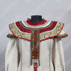 Косоворотка комбинированная, по низу рукава и изделия бордюр красного цвета. Яркая сочная тесьма и контрастность помогают изделию быть ярким, оригинальным и праздничным.