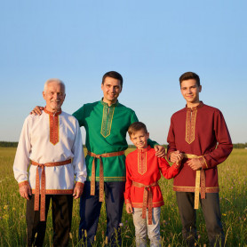 Данная модель привлекает внимание сочным бордовым цветом и благородным, тканным орнаментом на груди. Рубаха «Молодецкая» выполнена из натурального, плотного, умягченного льна. Хороший, оригинальный подарок важному для Вас человеку. В комплекте имеется пояс. По индивидуальному заказу можно подобрать порты.