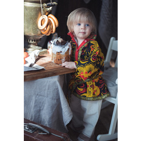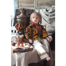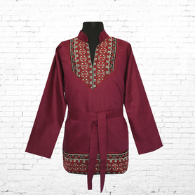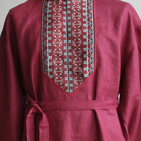 Изделие комплектуется кушаком (поясом) из ткани с тем же декором.