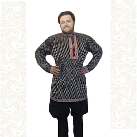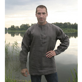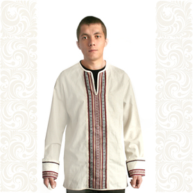 Рубаха мужская «Истоки» удобна в носке, так как выполнена из дышащей, легкой льняной ткани, с коротким втачным рукавом, свободной горловиной. Низ изделия, ворот и рукава украшает жаккардовая тесьма с обережным рисунком.