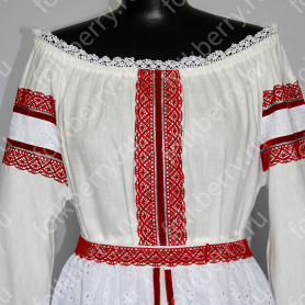 Материалы: лен, жаккардовая тесьма с обережными символами