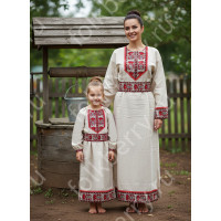 Материалы: 100% хлопок с историческим рисунком, восстановленным на Шуйском ткацком производстве; хлопковое шитье, хлопковое кружево.