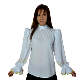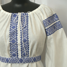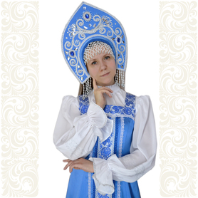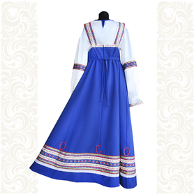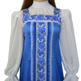 Сарафан с блузой «Гжель-2» – яркий наряд в духе народных традиций. Оригинальный дизайн, красивые оттенки синего, бирюзового, белого цветов, качественное исполнение комплекта порадуют Вас. Это хороший выбор для участников танцевально-театральных коллективов.