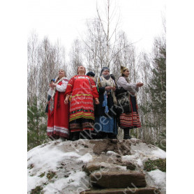 Изделие комбинированное, выполнено из ткани двух цветов – основной и дополнительной красной детали по низу рукава и рубахи.
